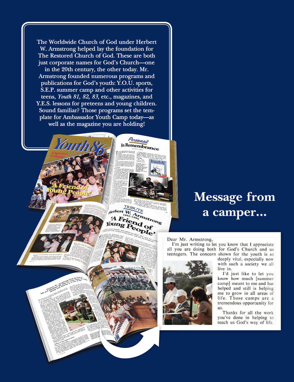 This letter was quoted in the Church’s magazine for teenagers, titled Youth, after Mr. Armstrong died in January 1986 at the age of 93. It was part of a tribute to the man who during a 52-year ministry dedicated much of his service to helping teenagers become more devoted to God’s Way.
